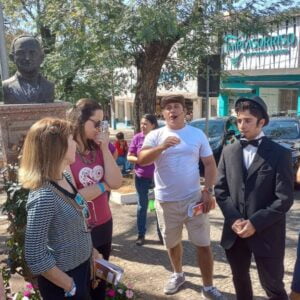 O city-tour realizado a pé retratou curiosidades da vida de Adoniran e suas músicas, passando pelo centro da cidade, pelo clube de mães e finalizando com uma aula na Igreja Matriz de Valinhos.