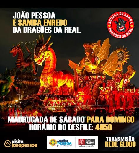 A apresentação de João Pessoa como enredo da Dragões da Real é um investimento feito pela Prefeitura, numa aposta certeira para atrair os olhos do Brasil e do mundo para a Paraíba, ampliando ainda mais o movimento de turistas no destino.