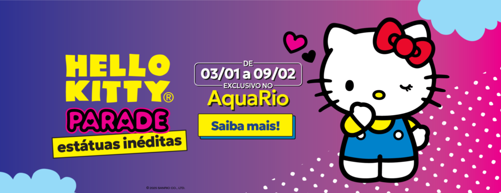 A magia da Hello Kitty Parade segue viva no Rio de Janeiro, no AquaRio, com a exposição aberta ao público até o dia 09 de fevereiro de 2025. São 26 esculturas únicas que estão espalhadas por diferentes espaços, como o Museu de Cera e o Mar de Espelhos, criando uma experiência visual e interativa.